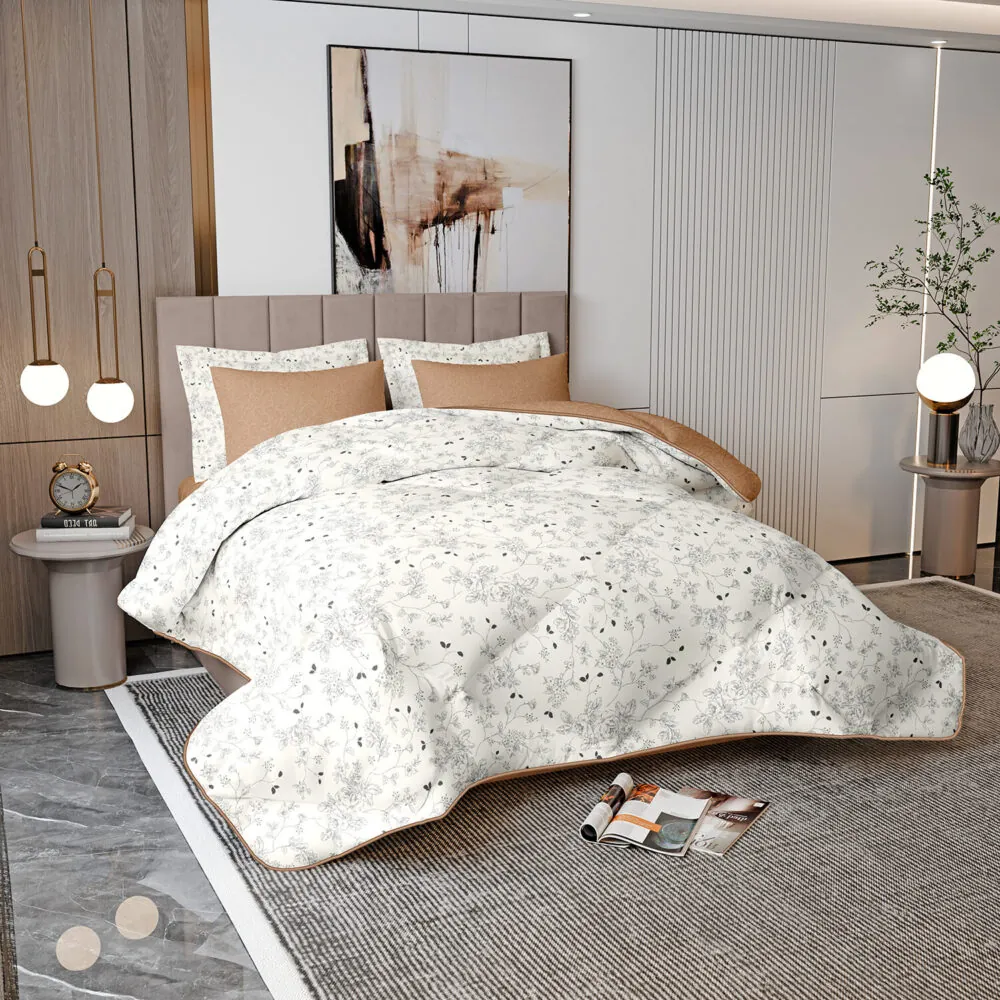 Beige Floral Cotton Comforter Set