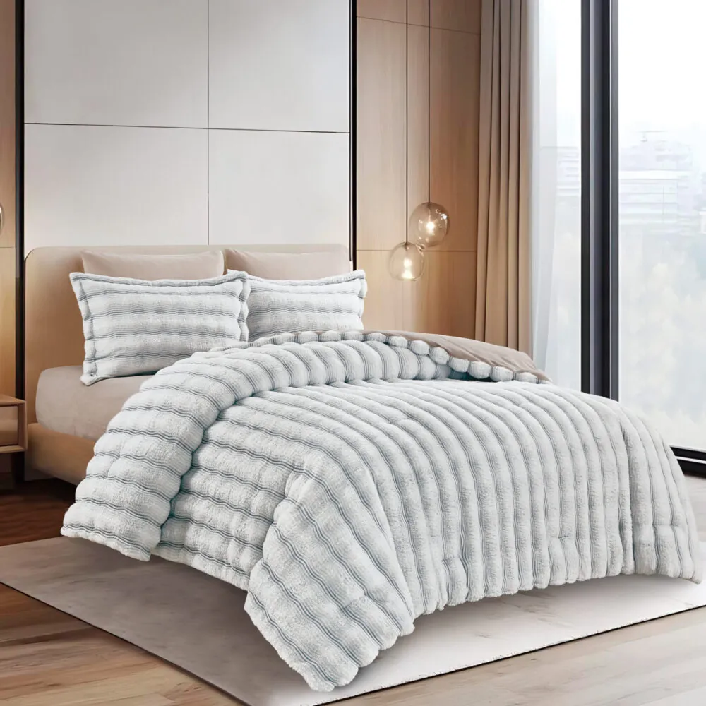 New Luxury Rabbit Fur Comforter Set for Winter Light Grey