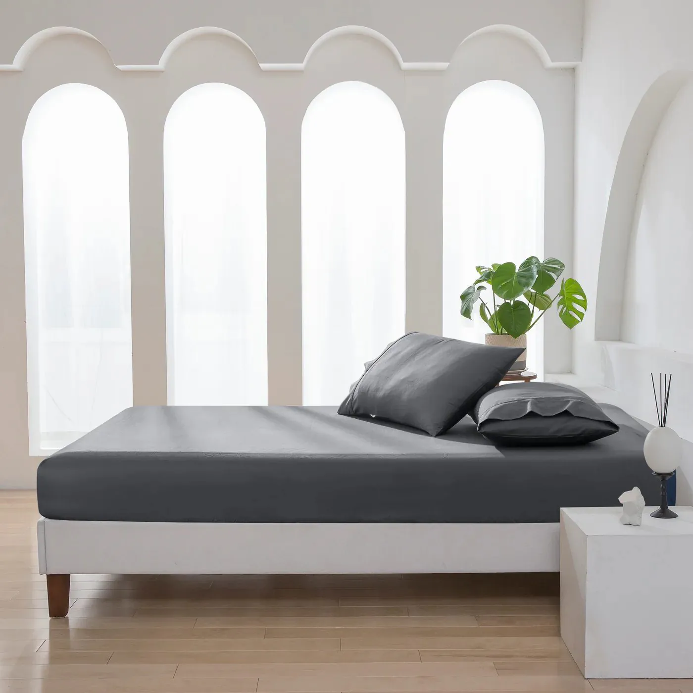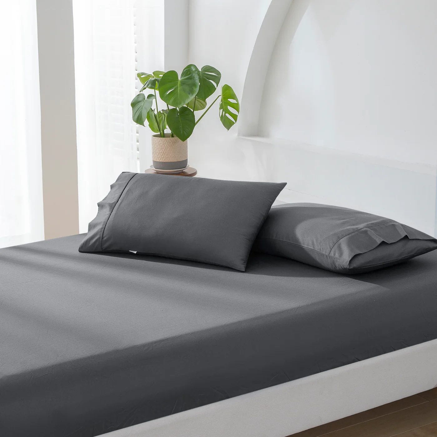 Plain Dyed Fitted Sheet Set Dark Gray