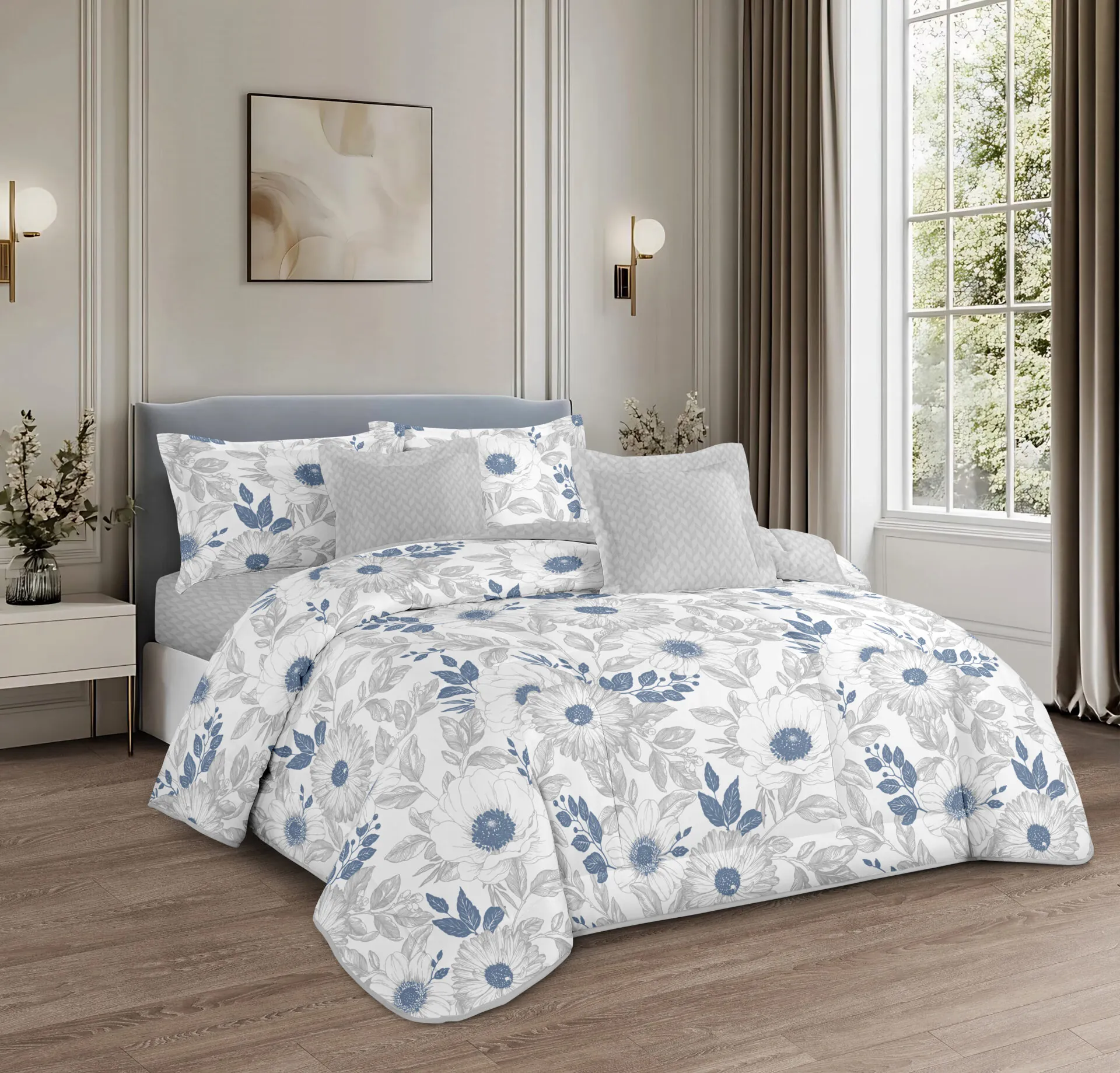 Bule Floral Fashionable Comfortable Comforter Set