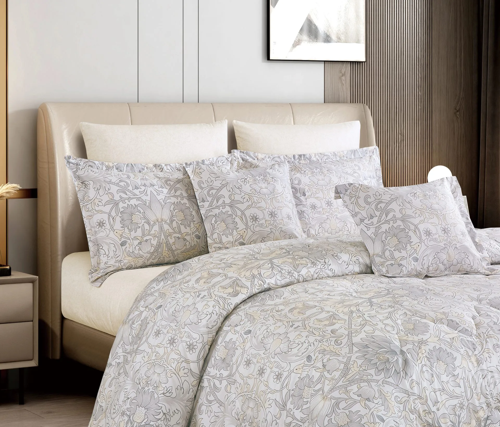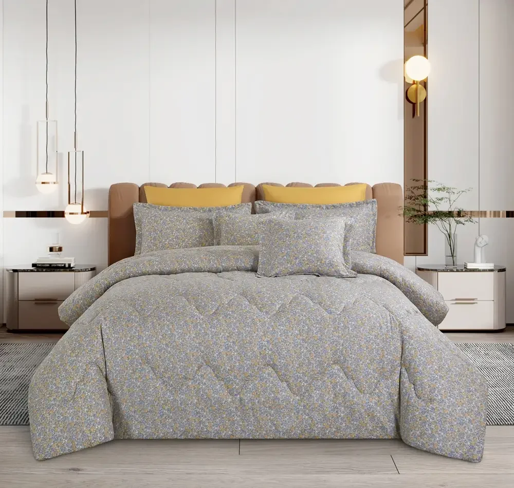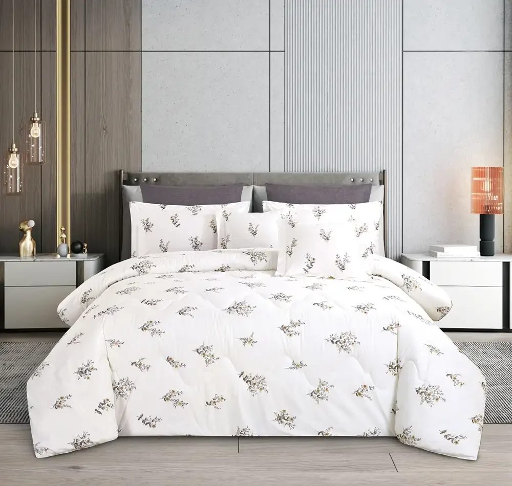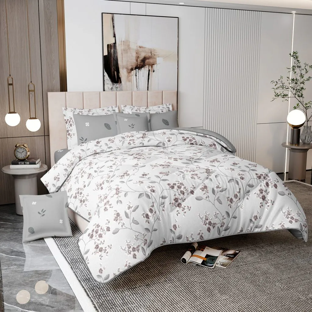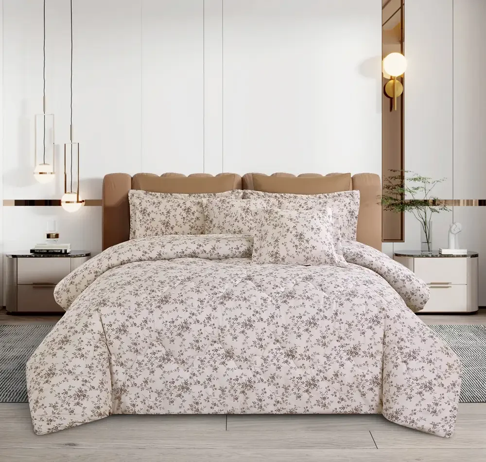 Beige Floral Cotton Comforter Set