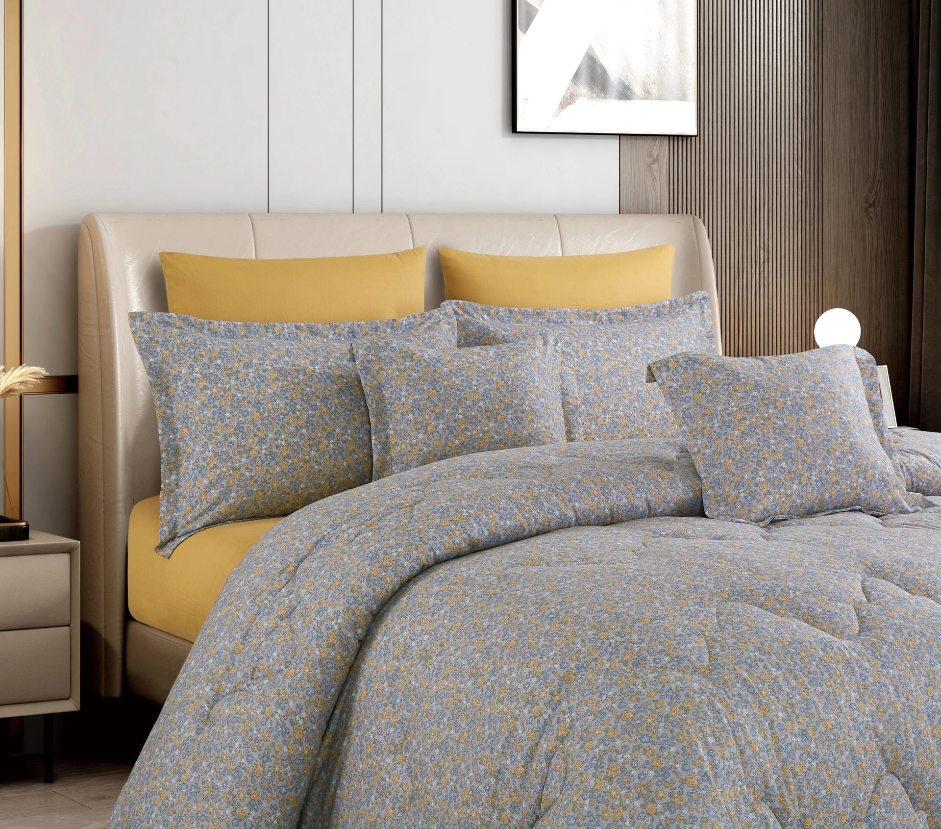 Yellow and Blue Garden Floral Comforter Set Cotton Yarn