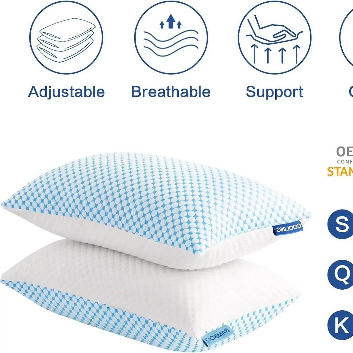 Wrapped in a cool-touch fabric that actively wicks away moisture and dissipates heat for a refreshingly cool night’s sleep. It features a 750 fill-power down-alternative layer for cloud-like softness, combined with a responsive memory foam core that provides adaptive, pressure-relieving support. The memory foam is certified for durability, cleanliness, and odor-free comfort. This pillow is a customer favorite for its perfect balance of cooling comfort and personalized support.