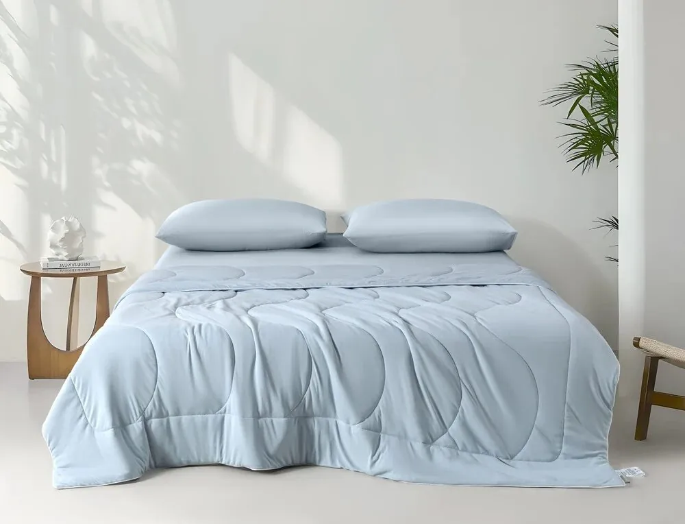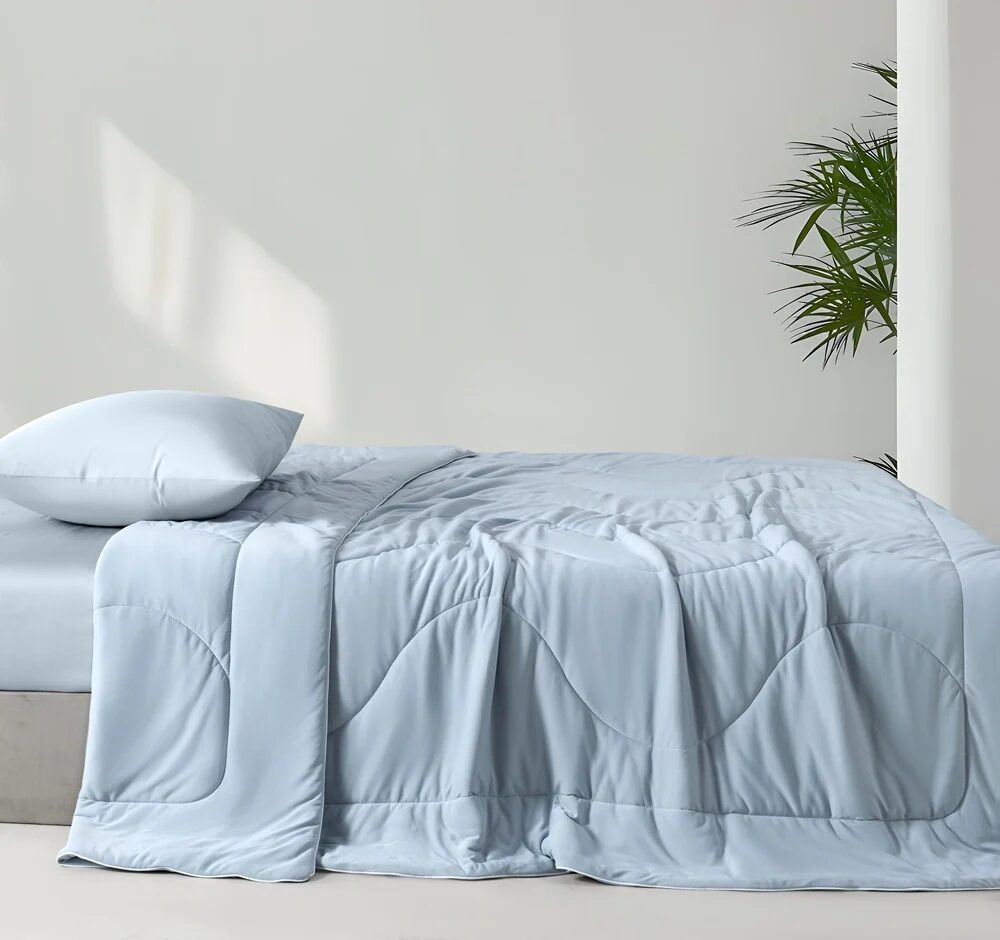 Indulge in the softness and comfort of Pureluxe quilts. This cool to touch and smooth blanket is the perfect for all climate. Available in a range of subtle colors that will blend seamlessly into any bedroom décor.