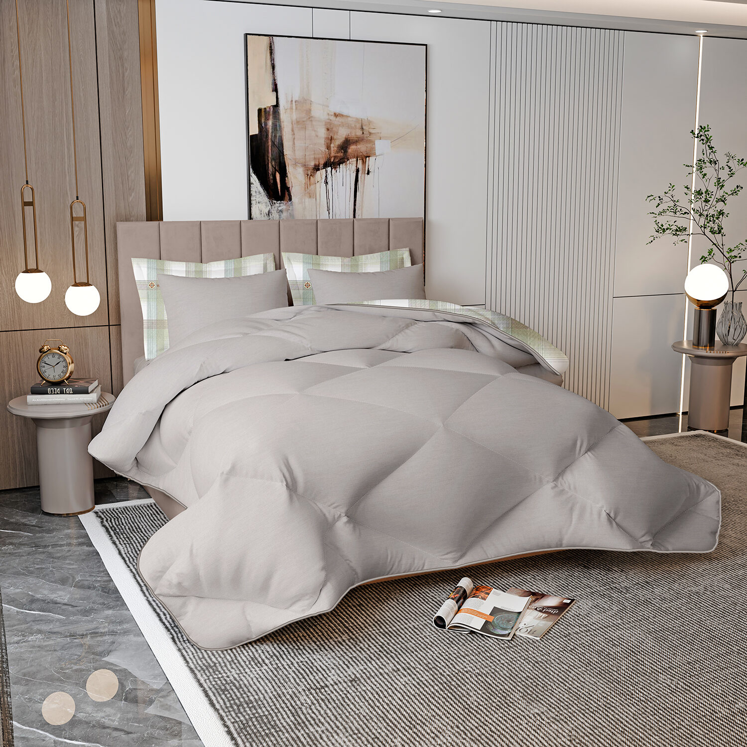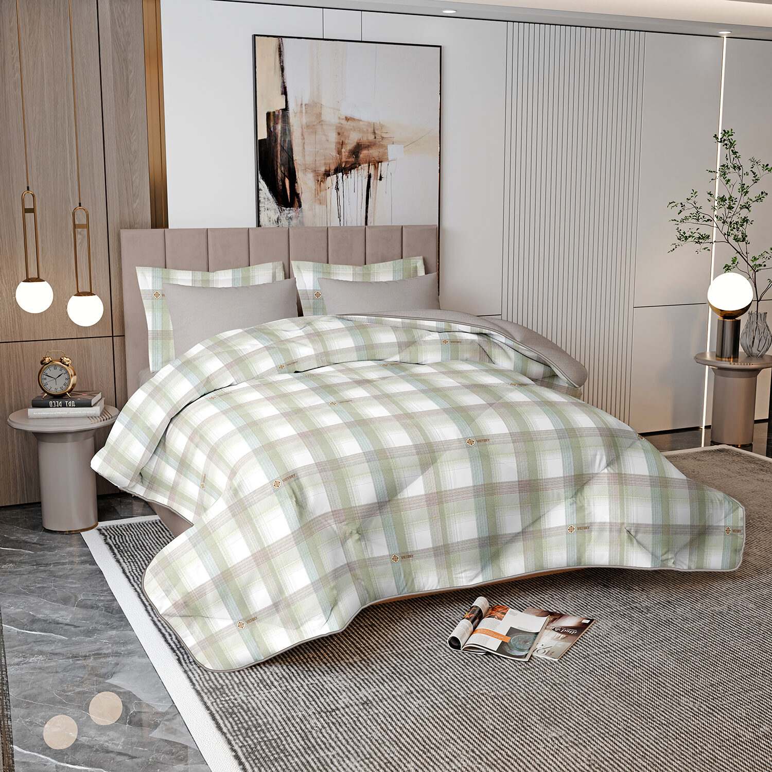 Comforter x 1: Solid Colored both front side and backside, a simple matching design.