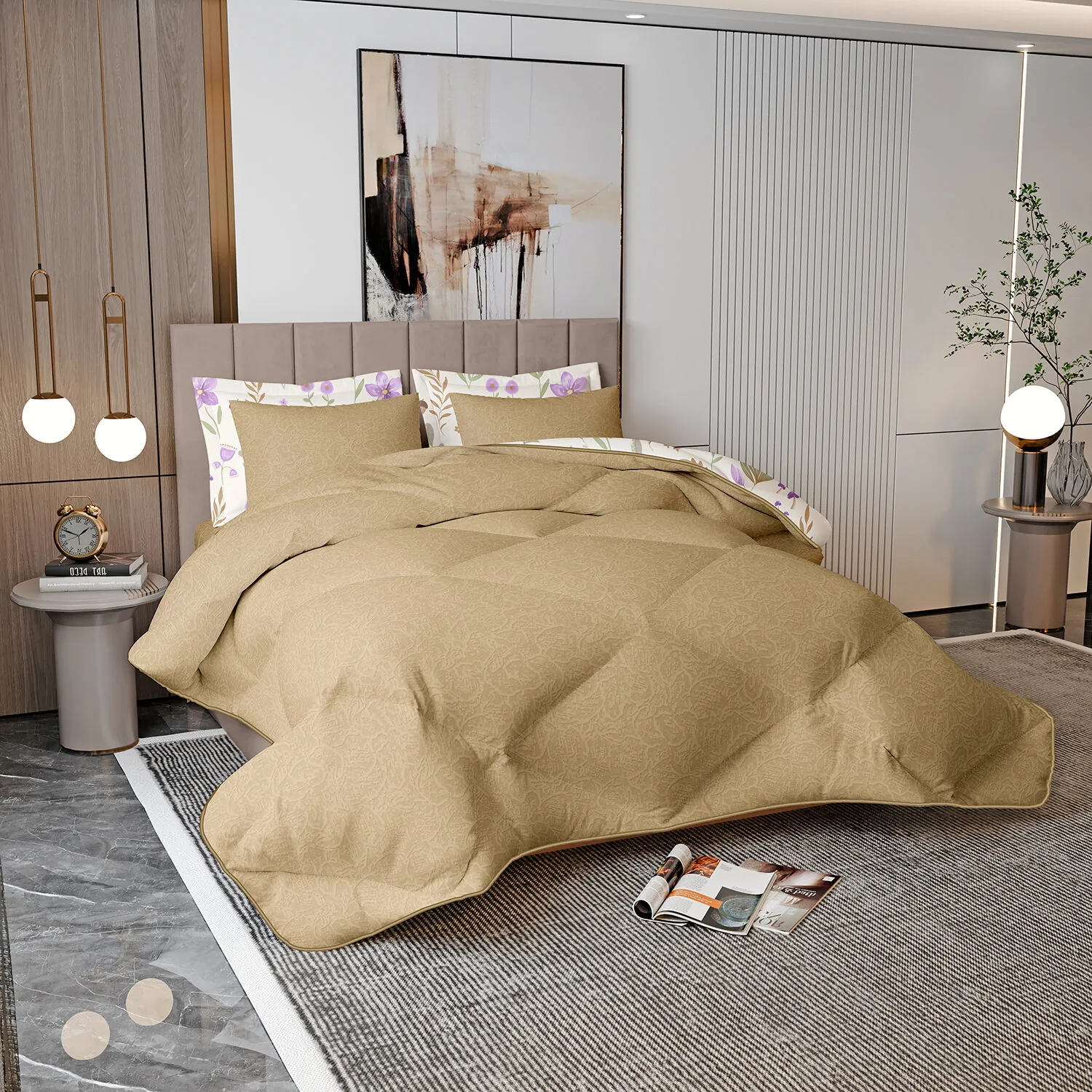 Comforter x 1: Solid Colored both front side and backside, a simple matching design.