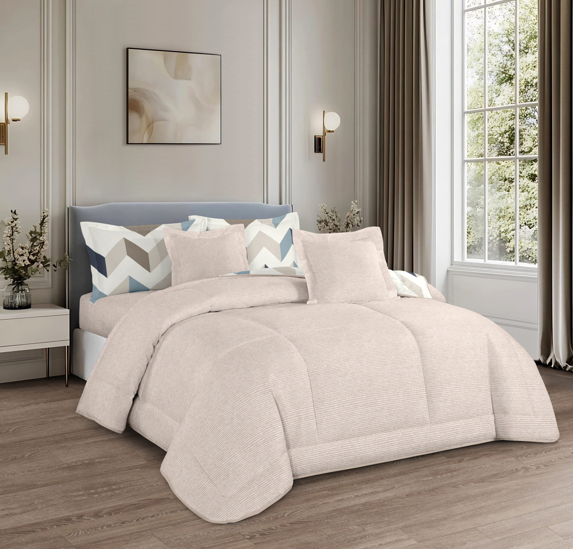 Comforter x 1: A/B Design Colored both front side and backside, a simple matching design.
