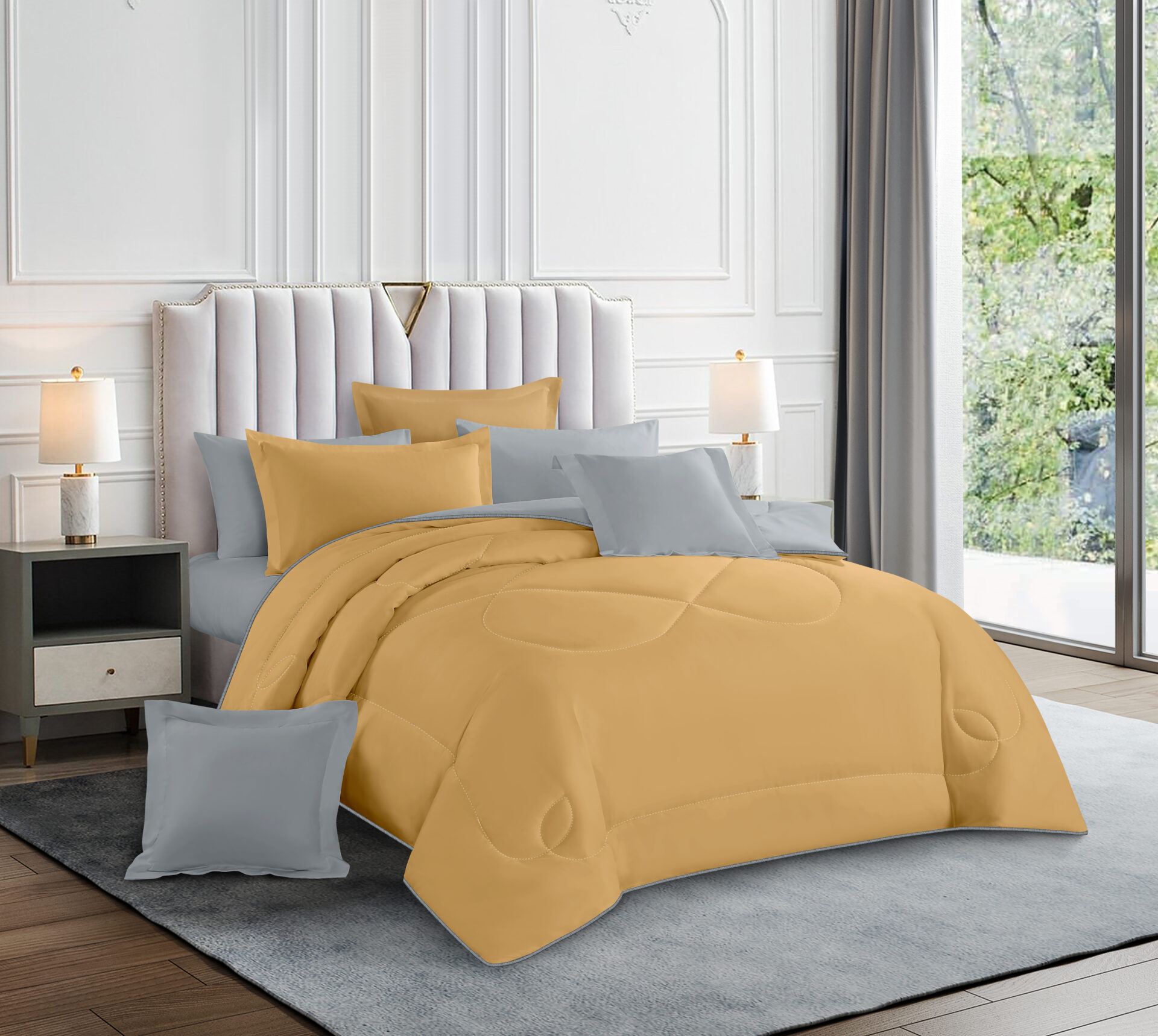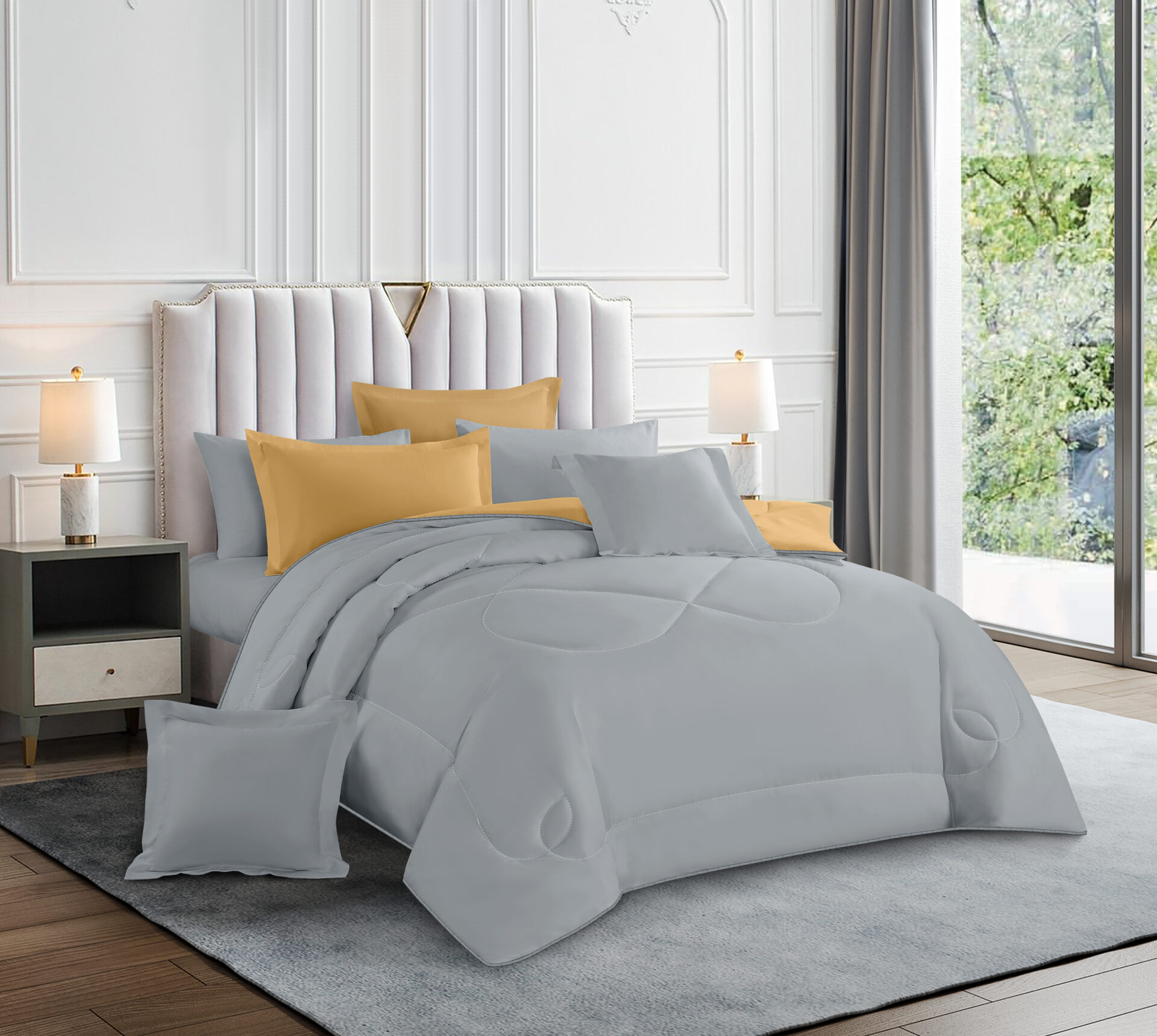 Comforter x 1: A/B Design Colored both front side and backside, a simple matching design.