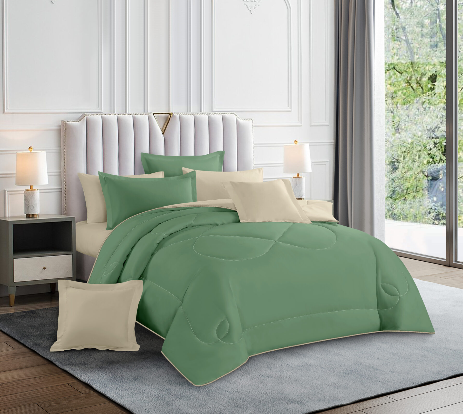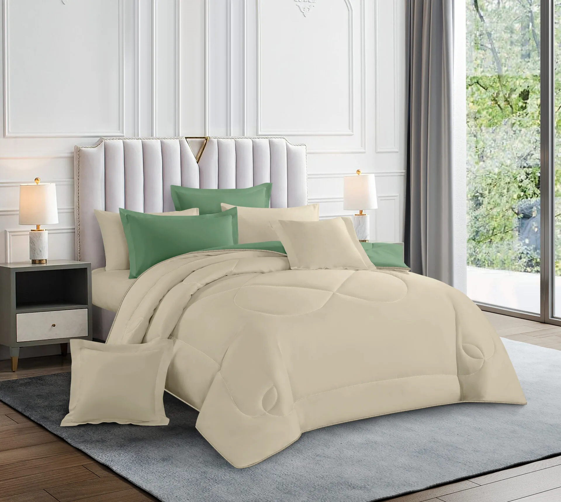 Comforter x 1: A/B Design Colored both front side and backside, a simple matching design.