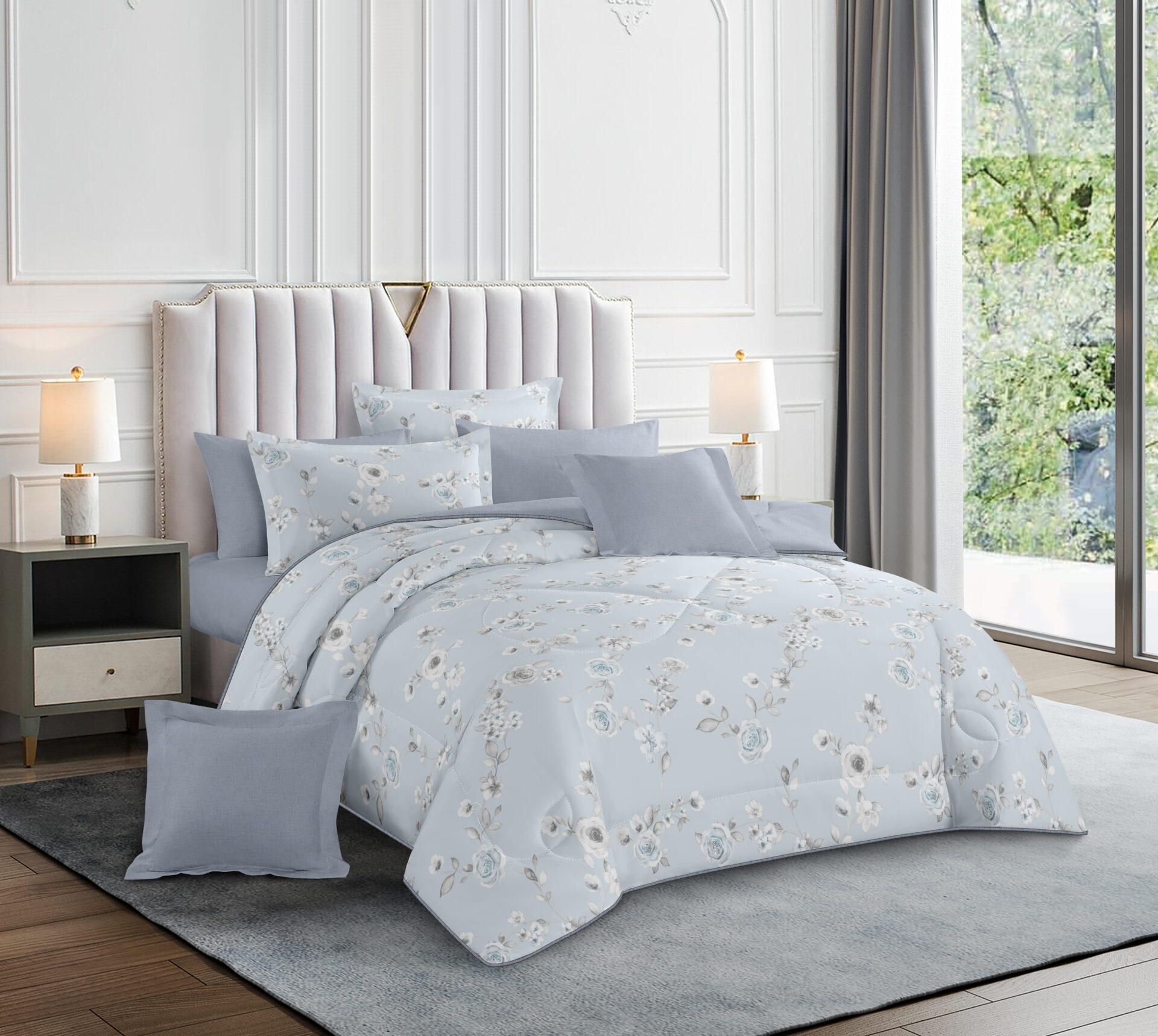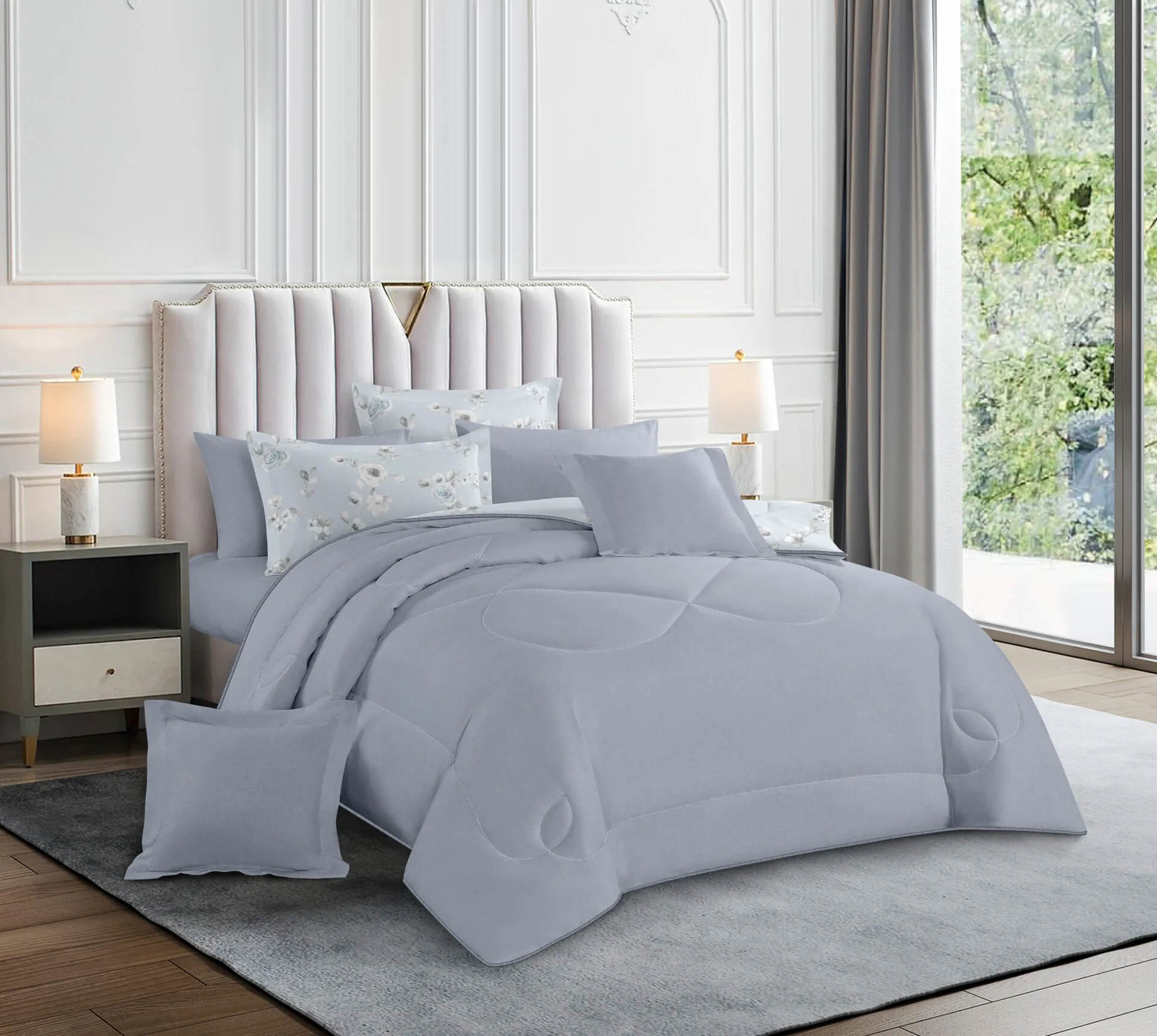 Comforter x 1: Solid Colored both front side and backside, a simple matching design.