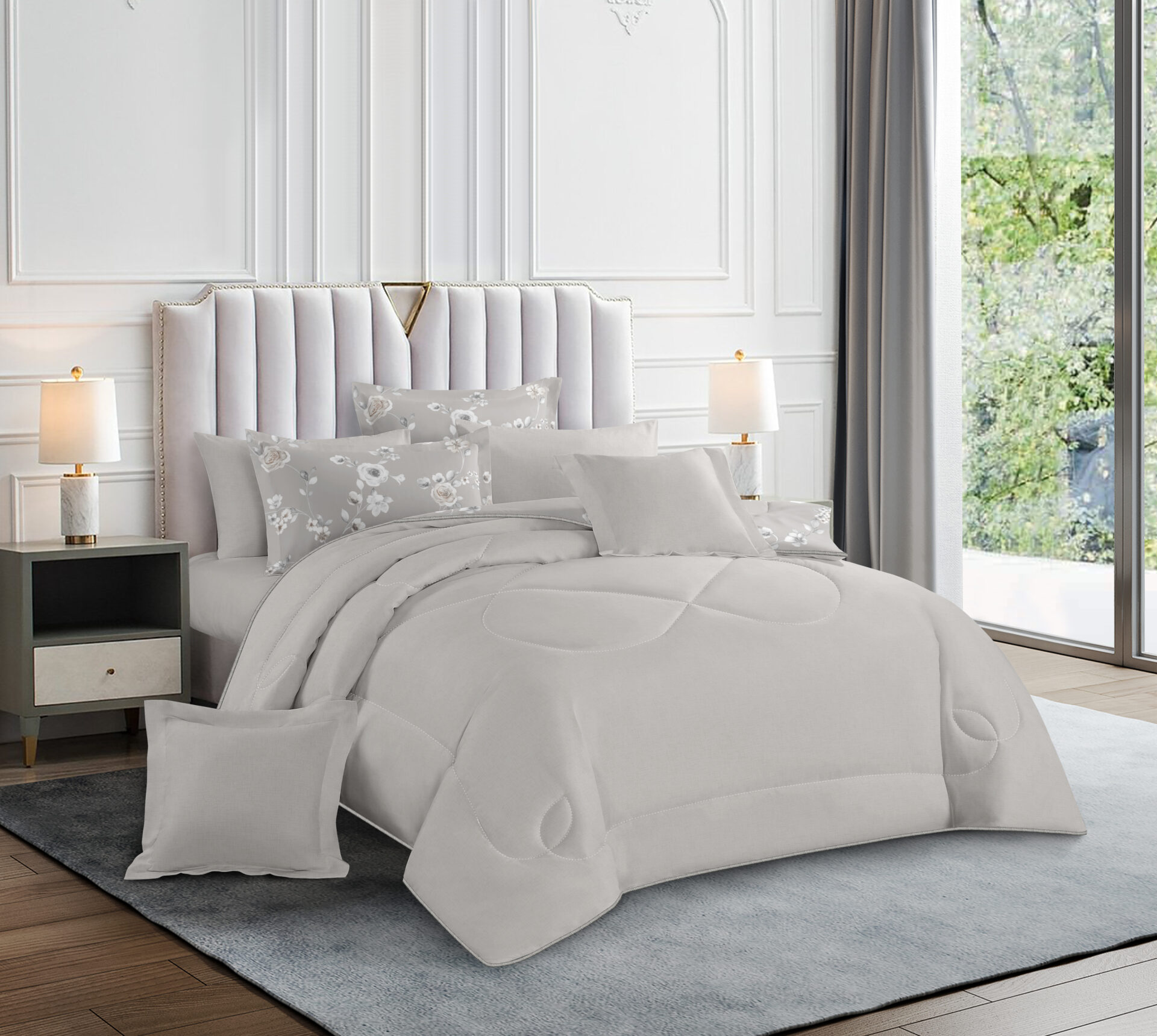 Comforter x 1: Solid Colored both front side and backside, a simple matching design.