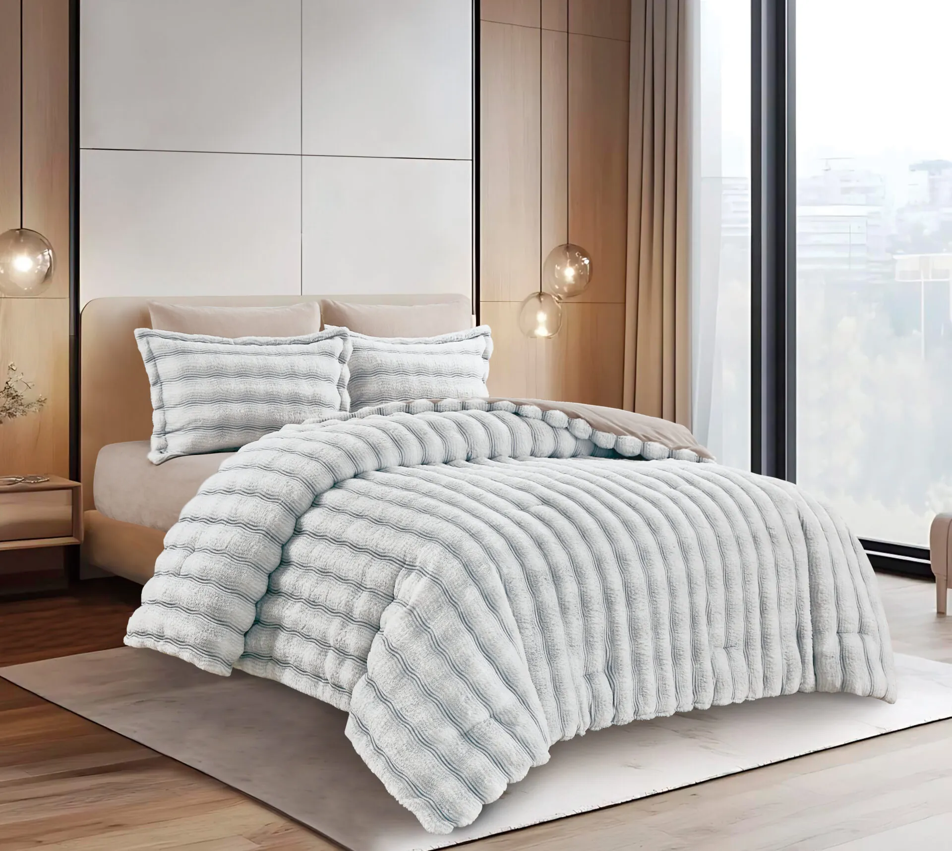 New Luxury Rabbit Fur Comforter Set for Winter Light Grey