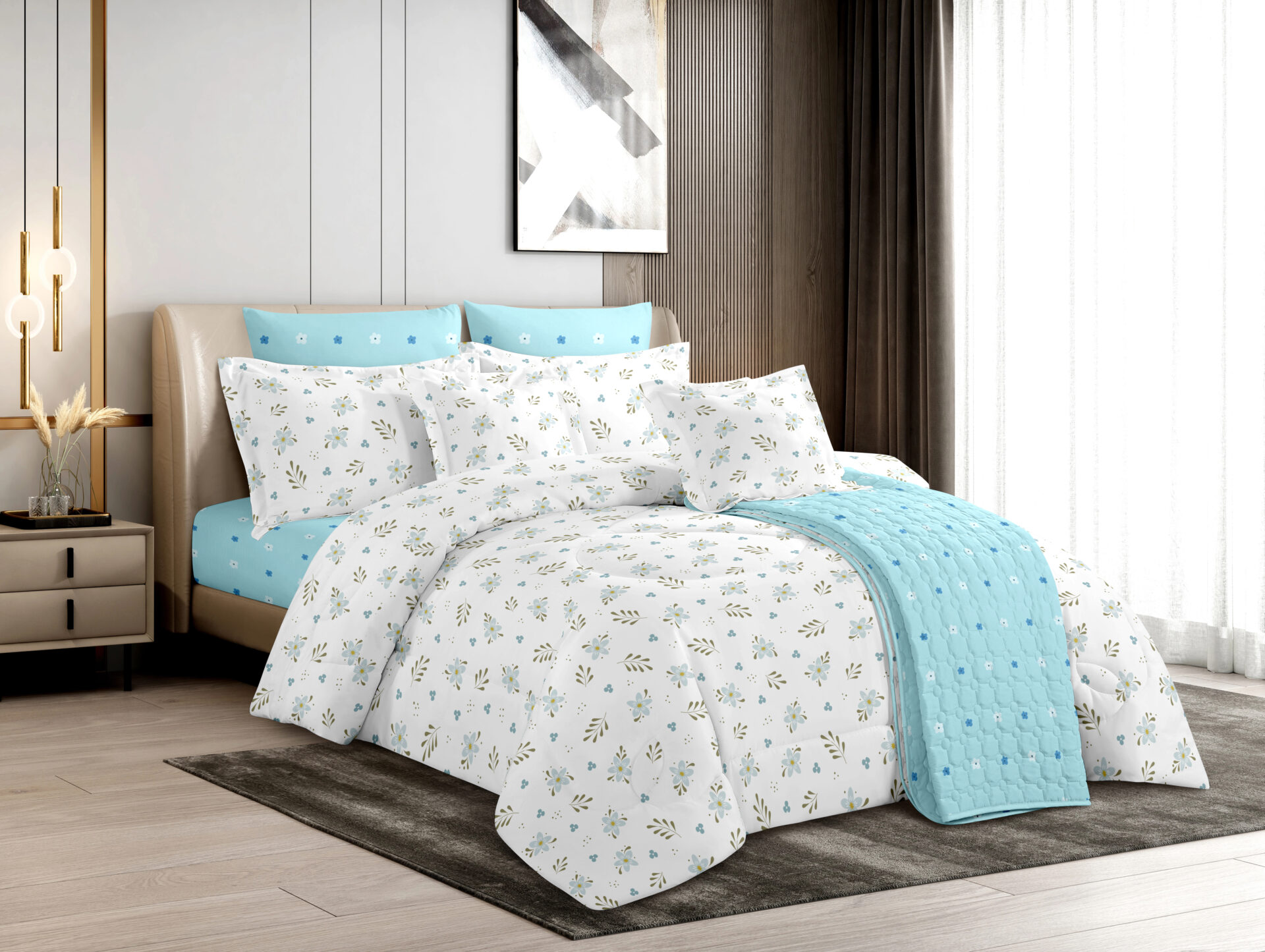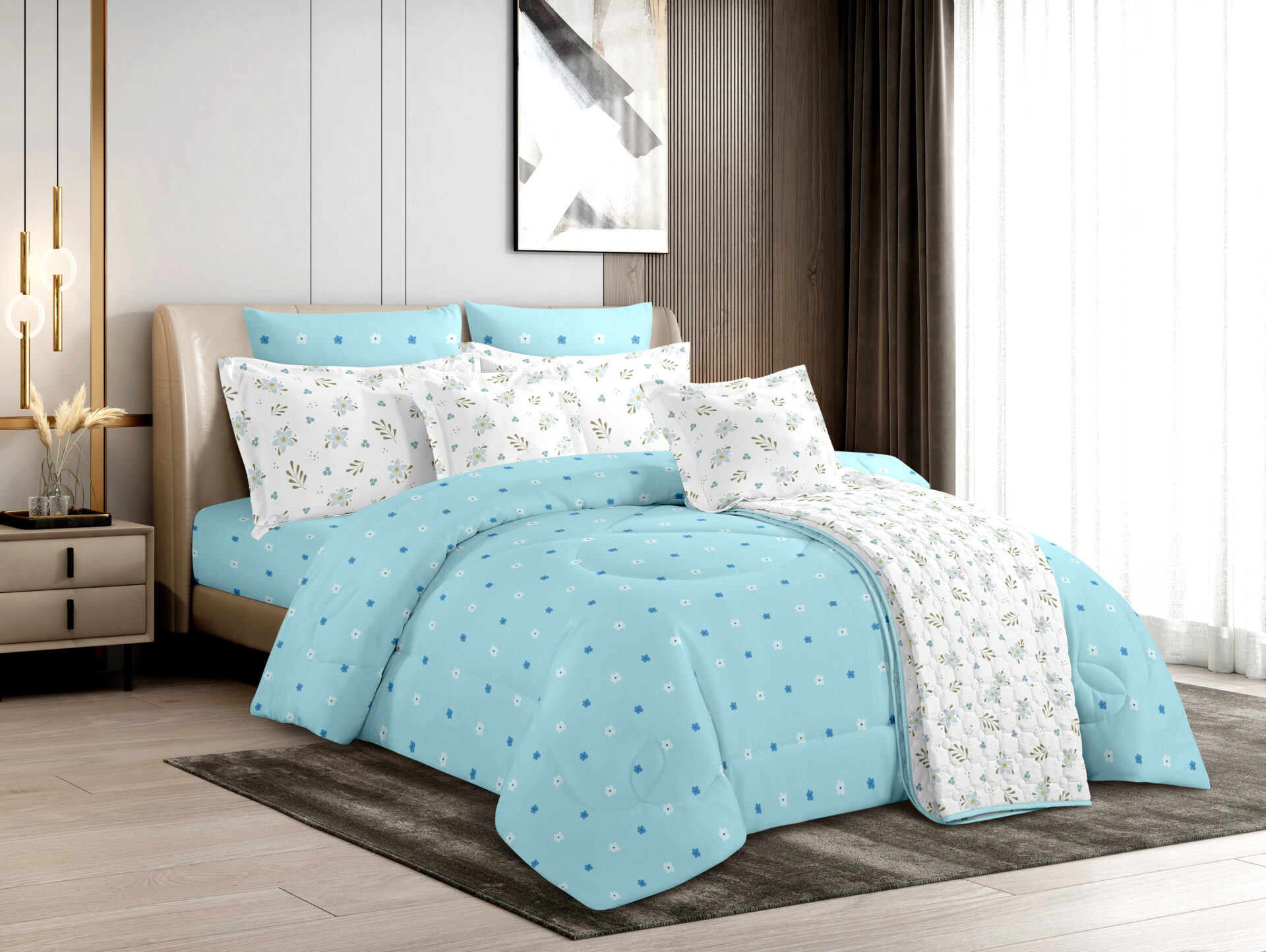 Comforter x 1: Solid Colored both front side and backside, a simple matching design.