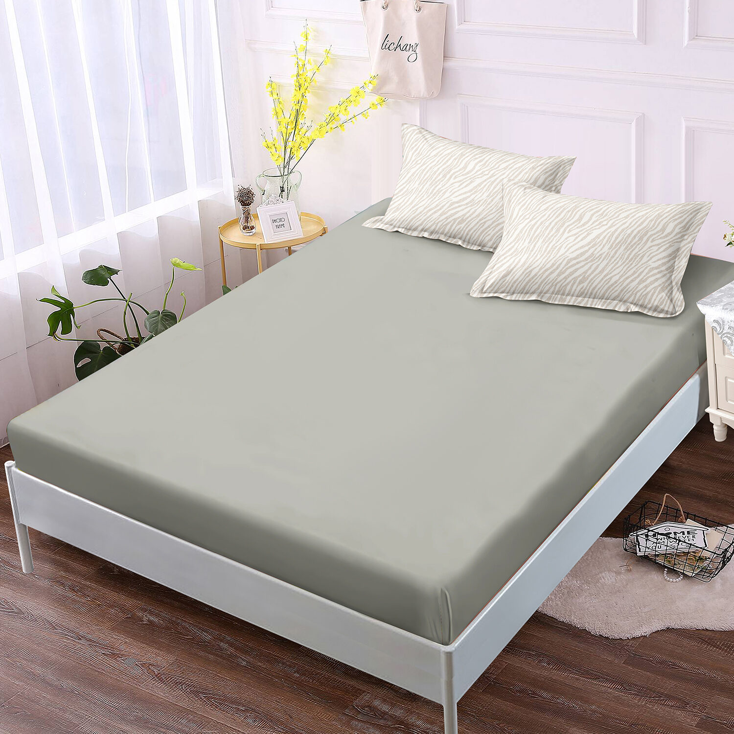 Fitted Sheet x 1: Elastic straps on the corners to cover the mattresses neatly around the corner.