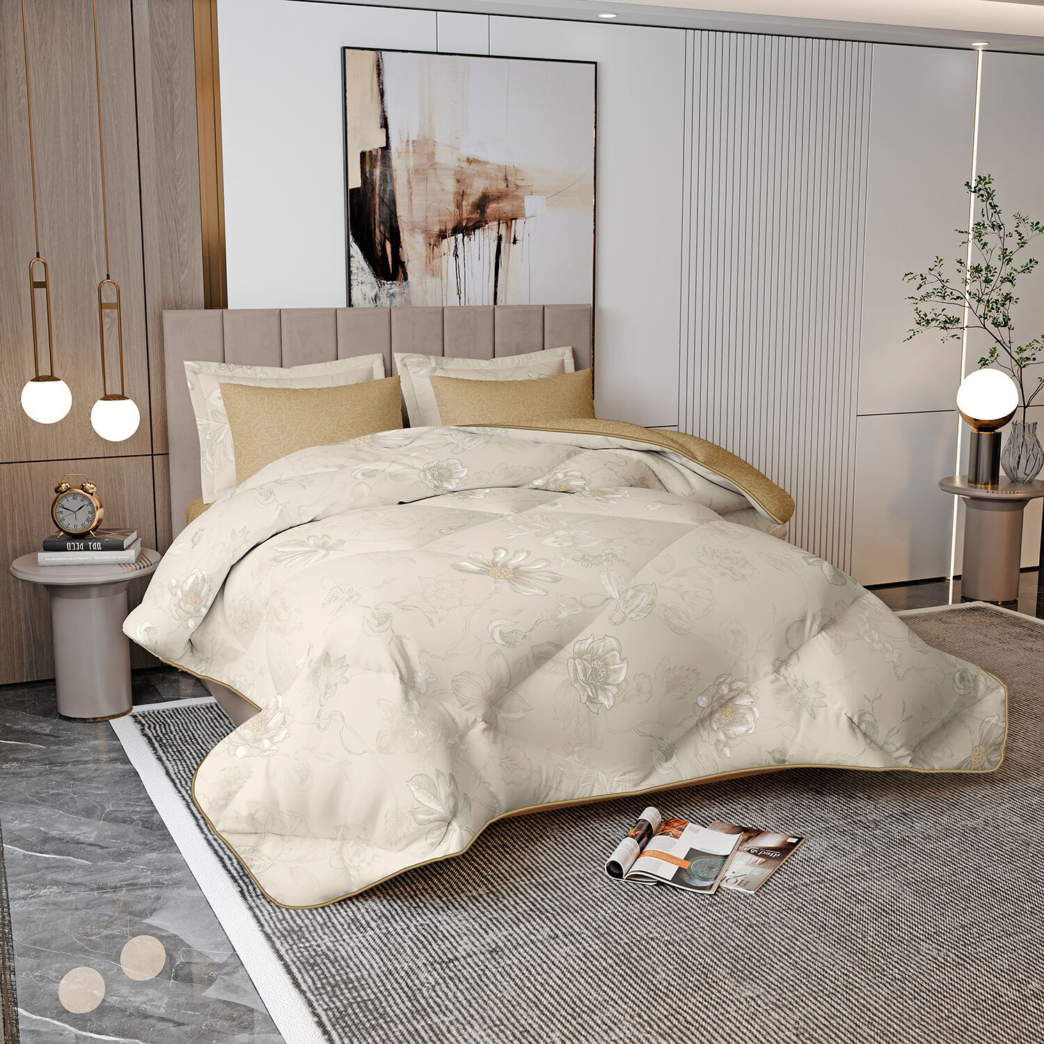 Comforter x 1: A/B Design Colored both front side and backside, a simple matching design.